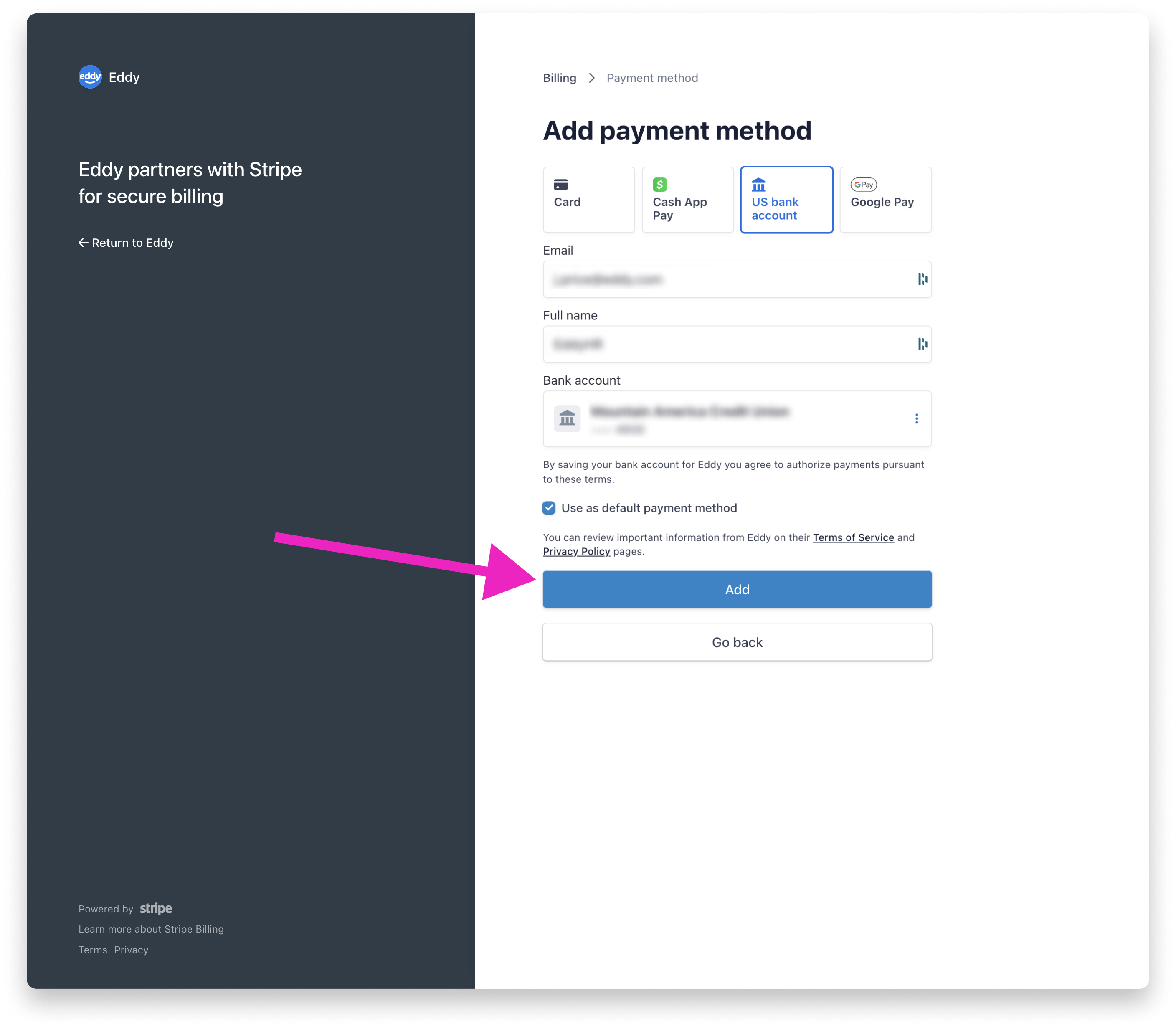 Making the transition from credit card to ACH (Automated Clearing House) payments for your Eddy subscription can help reduce your payment processing costs while improving payment reliability. This article will walk you through how it's done.