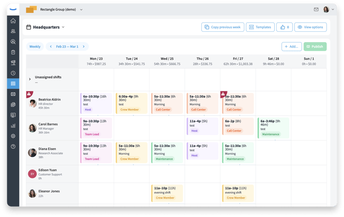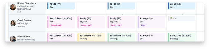 See who is scheduled each day so you can quickly spot gaps and overlaps.